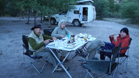 Mit unseren Freunden Monika & Albert Lixl fuhren wir mit einem bei ASCO CAR HIRE in Windhoek gebuchten Nissan Patrol in 28 Tagen 4974 km durch Namibia und Botswana. Davon waren ca. 4000 km Off-Road und hunderte von Kilometern Tiefsandpiste. Technische Probleme an den Fahrzeugen, wie abgebrochenes Türscharnier, mehrfach defekte Startelektrik, zerschlissene Reifen, defekte Benzinpumpe am Reservetank, Ausfall der Kühlboxelektronik, usw. konnten von uns größtenteils selbst und ohne nennenswerten Zeitverlust repariert werden.