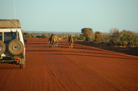 Wilde Kamele und Kängurus auf der Piste